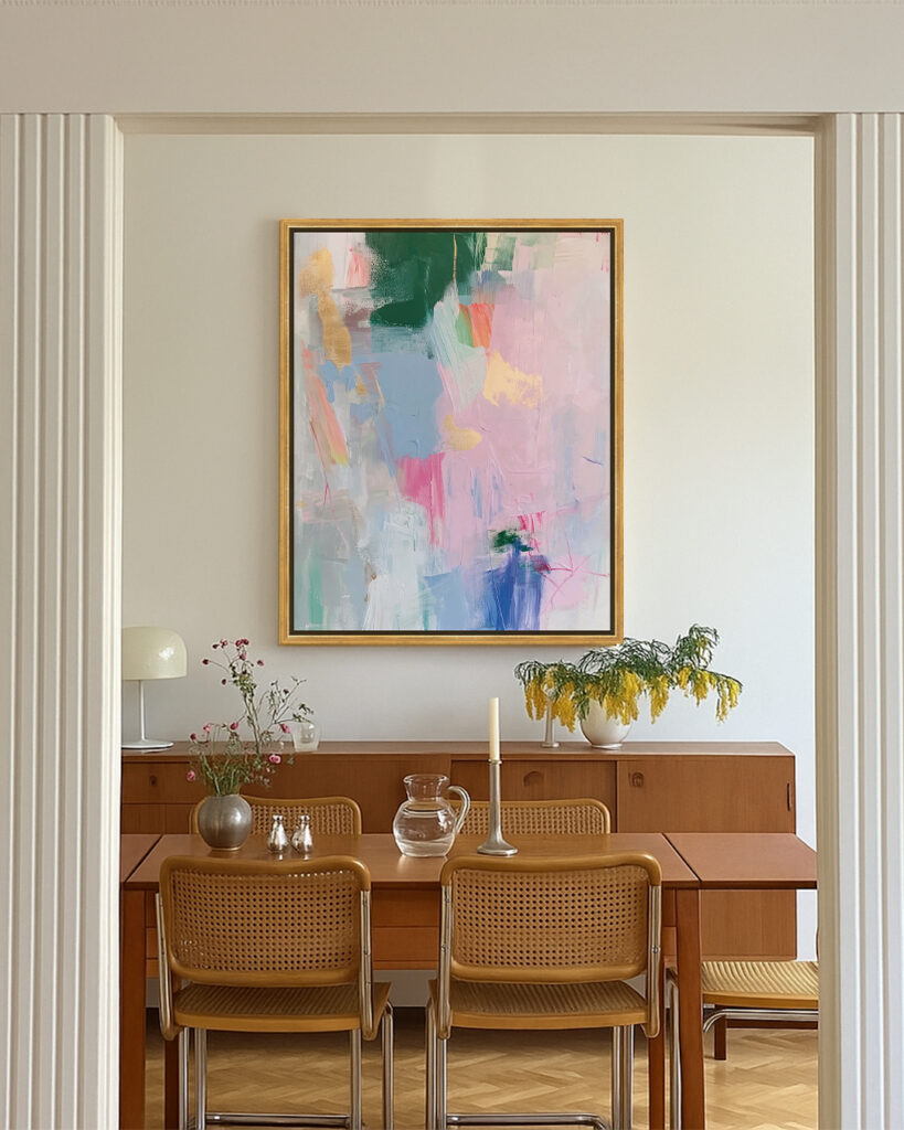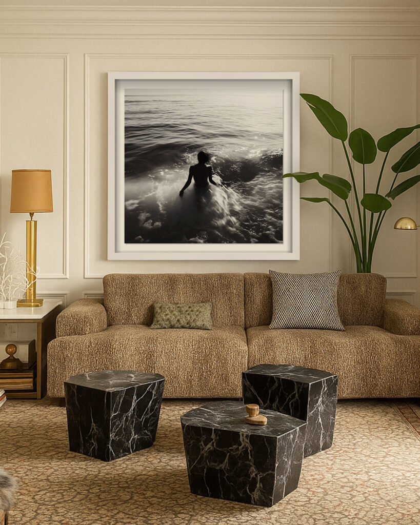The creative DNA of West Coastal is rooted in a trend Oliver Gal calls “coastal retro-futurism.” Inspired by 1970s convertibles, sun-drenched yacht clubs and minimalist modernism, the collection brings together washed neutrals, cinematic photography and abstract compositions that suggest movement, light and escape. These themes are being echoed across luxury brands such as Soho Home and in upcoming editorial spreads from Vogue Living and Architectural Digest, making this collection a timely translation of high fashion into fine art.