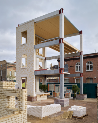 The Stone Demonstrator is a prototype of an alternative way to build that reduces carbon emissions by approximately 70% compared to a reinforced concrete frame, it is claimed, and 90% compared to a steel frame.